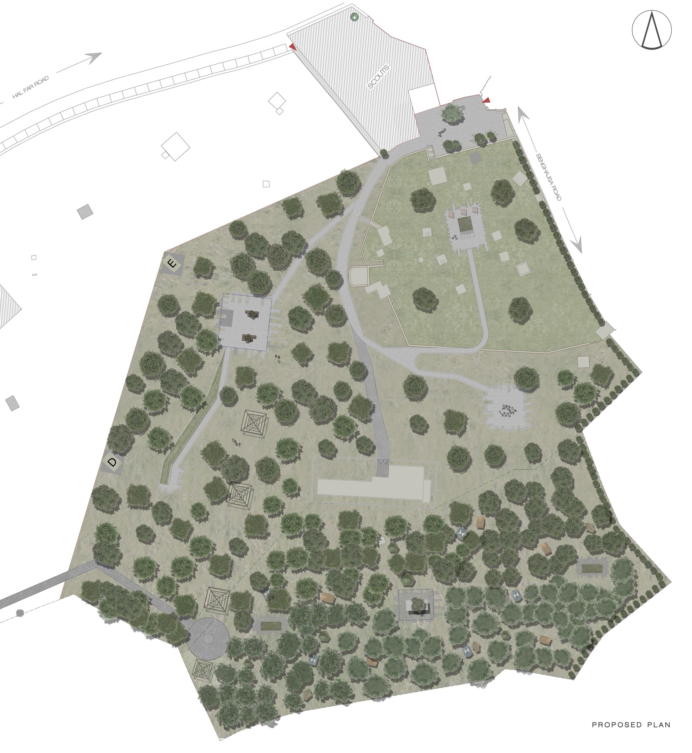 The brief called for the conversion of a site in Bengħajsa, Birżebbuga (Malta) into a recreational area by implementing an afforestation and including a picnic and camping areas.